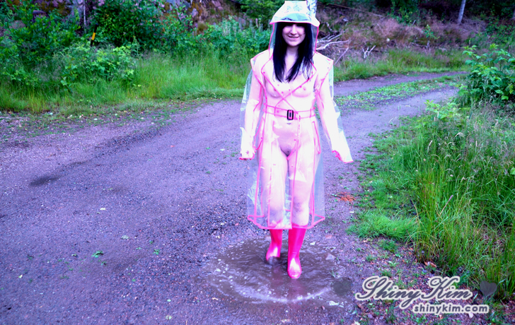 Nach einem schönen erfrischenden Sommerregen hatte ich tierisch Lust darauf, meinen durchsichtigen PVC Regenmantel und meine neuen pinken Gummistiefel anzuziehen. Es macht mir so Spaß nichts unter dem PVC Regenmantel zu tragen und wirklich überall auf meinem Körper Gummi zu spüren. Von Kopf bis Fuß. Dazu noch der Kick, gesehen und erwischt zu werden wie man nackt nur in Gummistiefeln und Regenmantel in der Pfütze rum saut und rum spielt lässt mich verrückt werden. Pack deinen Schwanz aus! Wichs ihn und beobachte mich wie ich Outdoor Spass in PVC / Gummi habe.